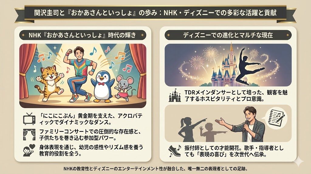 NHKの『にこにこぷんがやってきた!』で「うたのおにいさん」を務め、今なお圧倒的なパフォーマンスでファンを魅了し続けている関沢圭司さん。 2025年秋には、恵畑ゆうさんや小野あつこさんといった歴代のスターたちと共にステージに立ち、世代を超えた「... -