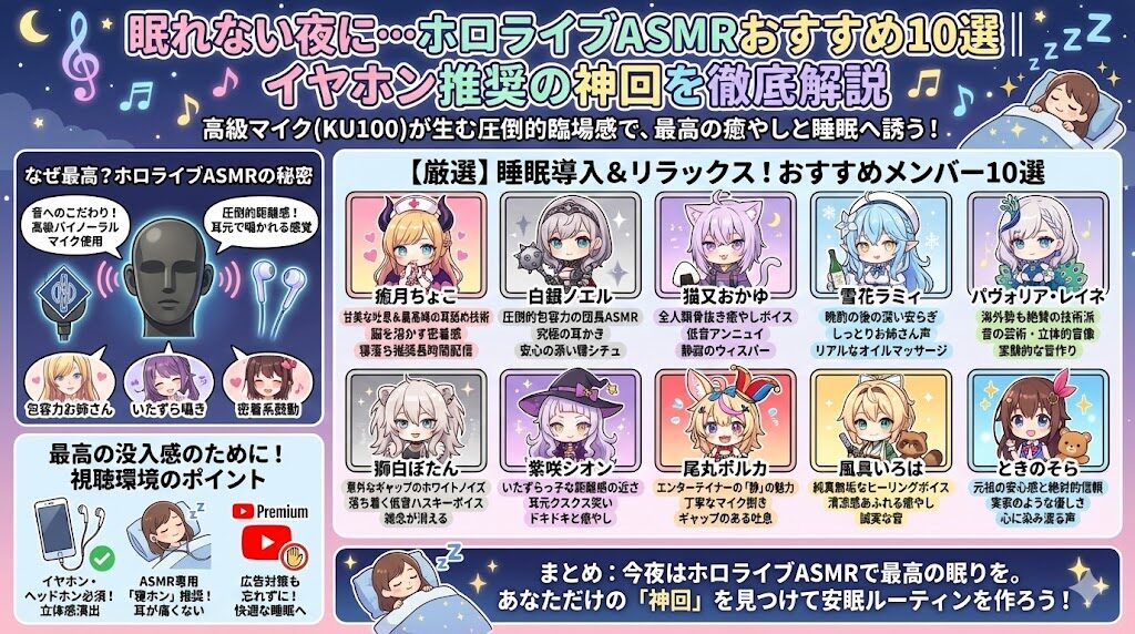 眠れない夜に…ホロライブASMRおすすめ10選|イヤホン推奨の神回を徹底解説