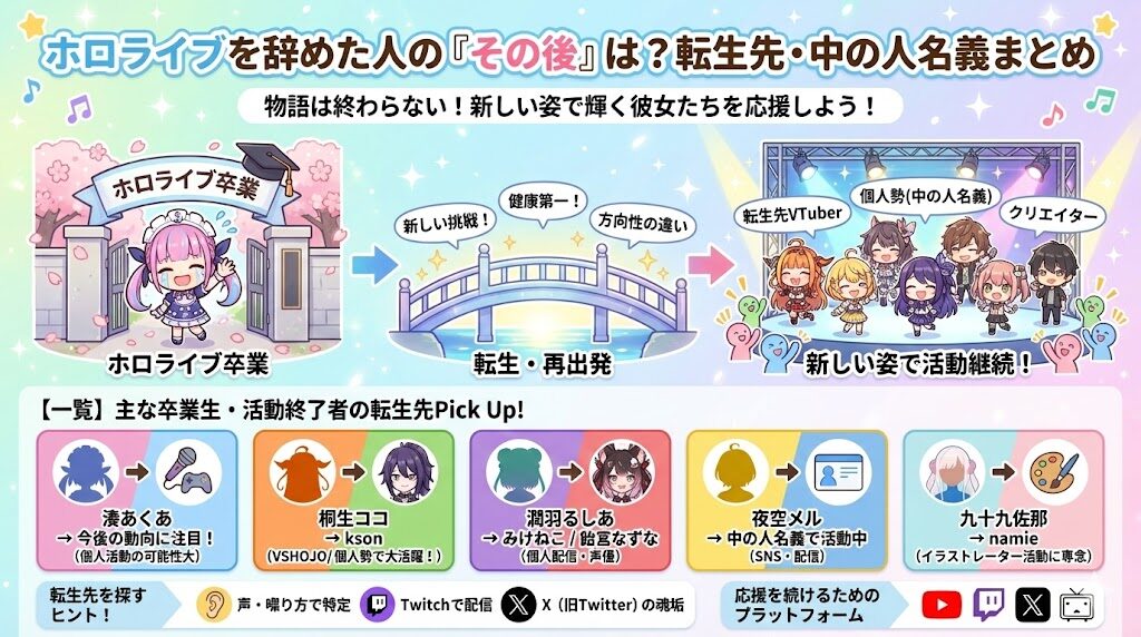ホロライブを辞めた人のその後|転生先VTuber・中の人名義まとめ