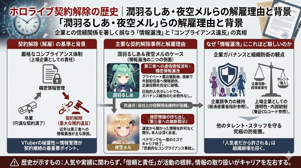 ホロライブ契約解除の歴史|潤羽るしあ・夜空メルらの解雇理由と背景