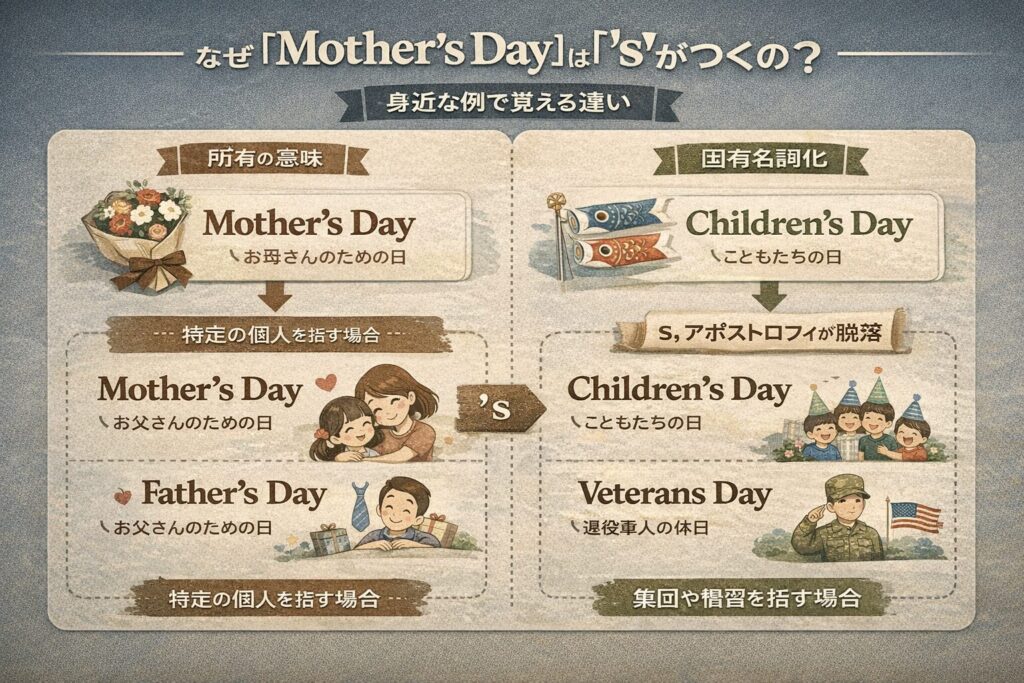 なぜ「Mother’s Day」は「’s」がつくの?身近な例で覚える違い