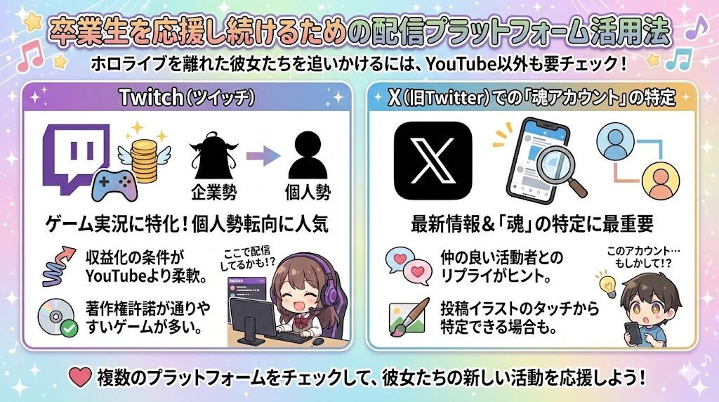 もしあなたが、卒業した推しの声が恋しくなったなら、本記事をヒントに新しい活動場所を探してみてください。