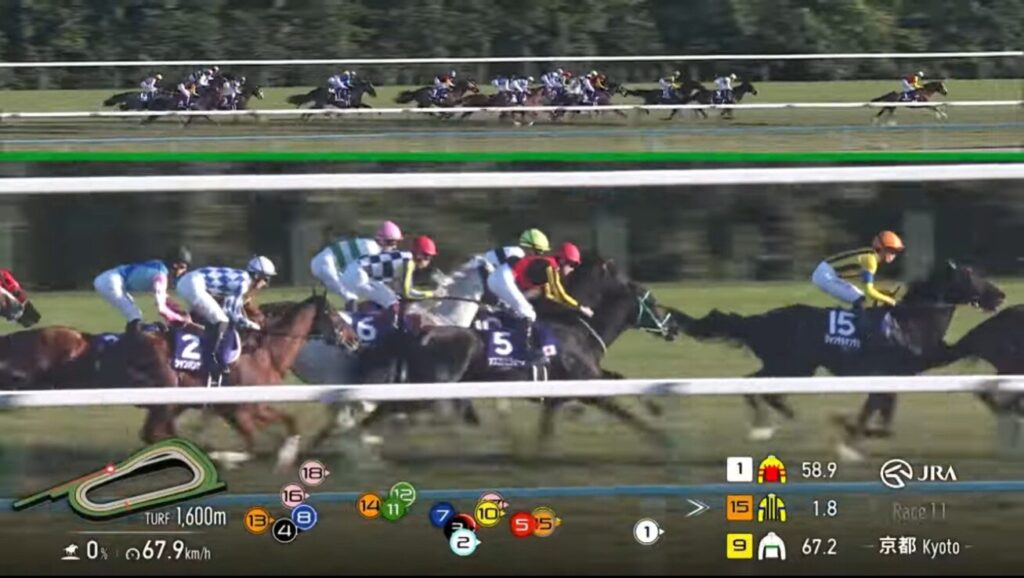 通常の馬なら直線の半ばまで追い出しを我慢するところを、川田騎手は4コーナー出口、残り400m地点ですでにエンジンを点火しました。「後ろに何がいようと、先に抜け出せば追いつけない」という、愛馬の能力への絶対的な自信が見て取れます。