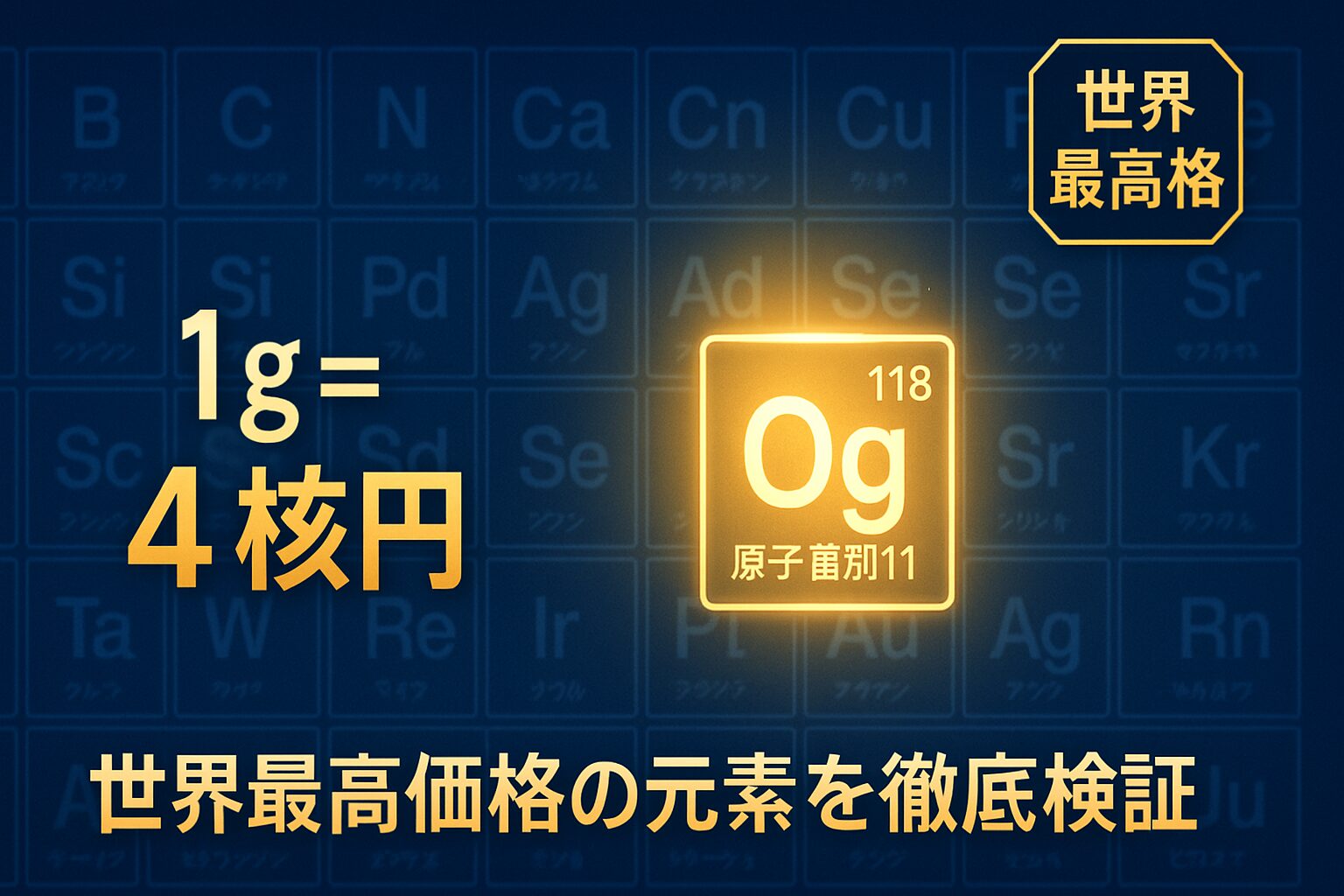 この記事では、公式データを基に独自の計算を行い、オガネソンの値段の真実に迫ります。中学生でも理解できるよう、わかりやすく解説していきますね。